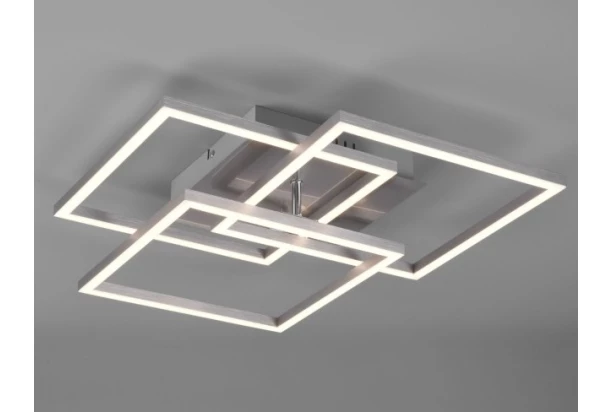 Elegantné LED osvetlenie s tromi kovovými štvorcovými rámami v matnom nikle je možné umiestniť na stenu alebo strop. Dva rámy sú otočné, vďaka čomu si ľahko prispôsobíte vzhľad lampy a vytvoríte si tak vlastné kreatívne usporiadanie. Svetlo sa hodí nad jedálenský stôl, do spálne, obývačky alebo akejkoľvek inej miestnosti.