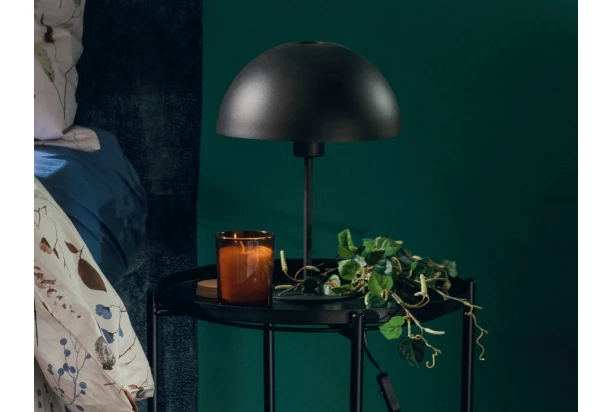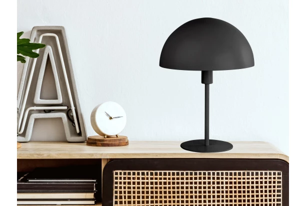 Všestranná stolná lampa s výškou 35 cm v klasickom dizajne ,má čierne kovové tienidlo, ktoré smeruje svetlo k podlahe a poskytuje tak príjemné nepriame osvetlenie. Svietidlo pôsobí harmonickým dojmom a je možné ho integrovať takmer do každého interiéru. Ideálne, ako atmosférické doplnkové osvetlenie napr. v chodbe, na odkladacom stolíku alebo ako nočná lampička.
