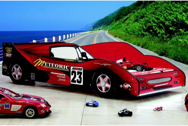 Atraktívna posteľ pre malých pretekárov a pretekárky. Imituje tvary červenej pretekárskej formule s predným LED osvetlením.