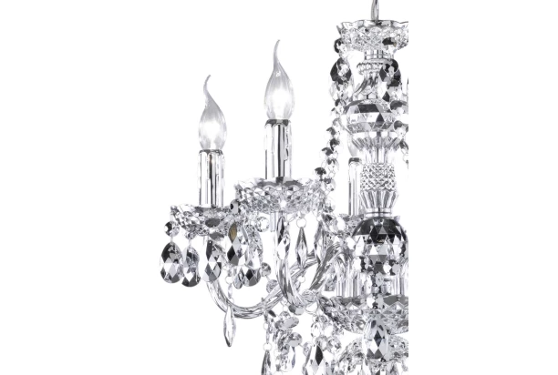 Trblietavý luster z imitácie krištáľu je stále módnym doplnkom interiéru. Lampa s priemerom 52 cm s 5 svietidlami je vyrobená z lesklého kovu a číreho akrylu. Očarujúce osvetlenie dokonale zapadne do moderných aj klasických štýlov zariadenia.