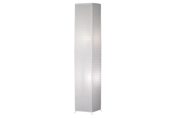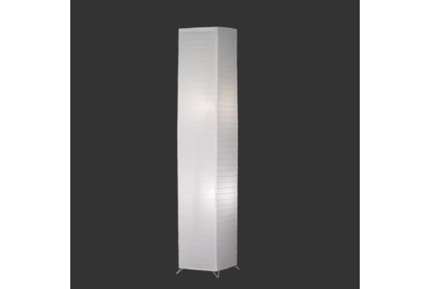 Stojacia lampa s bielym papierovým tienidlom a kovovou základňou poskytne príjemné svetlo v každej obývačke. Celková výška 130 cm.