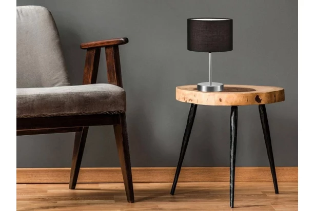 Moderná stolná lampa s textilným tienidlom v čiernej farbe vytvorí útulnú atmosféru v každej miestnosti. Lampičku je ideálna umiestniť na nočný stolík alebo komodu, kde poskytne to najlepšie osvetlenie. Výška 32 cm.