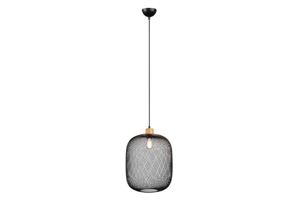 Luster s kovovým drôteným tienidlom v matnej čiernej farbe s priemerom 33 cm spolu s drevom pôsobí moderným vintage vzhľadom, ktorý sa hodí do obývacej izby, spálne, jedálne alebo kamkoľvek inam. Svetlo vrhá cez otvory v mriežke zaujímavé tiene, ktoré prispievajú k vytvoreniu štýlovej a útulnej atmosféry.