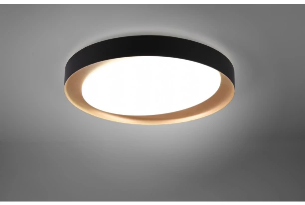 Okrúhle stropné LED osvetlenie s priemerom 48 cm v jednoduchom dizajne skvele zapadne do moderného interiéru a zaistí dokonalú svetelnú atmosféru. Lampa z čierneho plastu má vnútorný povrch zlatý, vďaka ktorému je dosiahnutý mierne trblietavý efekt. Svetlo je možné ovládať pomocou diaľkového ovládača – jas a farba svetla môže byť nastavená podľa Vašej nálady.
