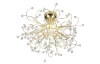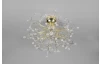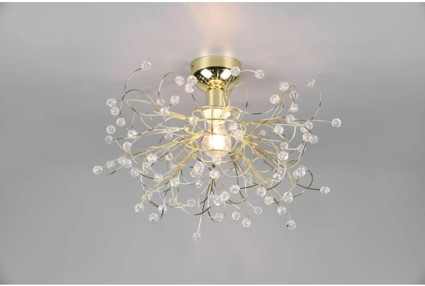 Elegantné stropné osvetlenie je vyrobené z kovu v mosadznej farbe a má niekoľko prepletených ramien s ozdobnými prvkami, ktoré pripomínajú krištáľy. Originálne designové svietidlo sa hodí do moderného interiéru, ktorému dodá nádych luxusu.