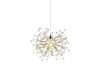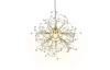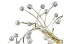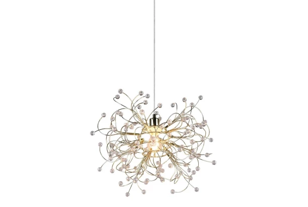 Elegantný závesný luster je vyrobený z kovu v mosadznej farbe a má niekoľko prepletených ramien s ozdobnými prvkami, ktoré pripomínajú krištáľmi. Originálne designové stropné svietidlo sa hodí do moderného interiéru, ktorému dodá nádych luxusu.