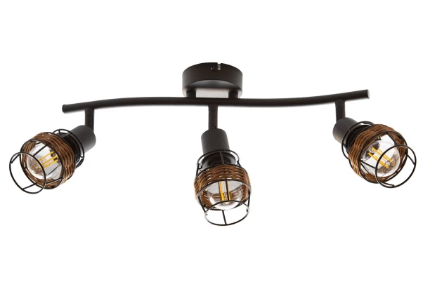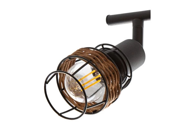 Stropné bodové osvetlenie Malik, drôtené s ratanom, 3 svietidlá