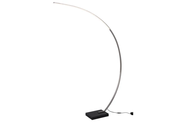 Moderná stojacia lampa s úspornou LED technológiou, má jednoduchý až minimalistický dizajn, ktorý zaujme predovšetkým svojim elegantne zakriveným tvarom. Farebné prevedenie matný nikel v kombinácii s čiernym podstavcom, umožňuje ľahké začlenenie do existujúceho interiéru. Výška 180 cm.