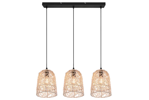 Moderné závesné stropné osvetlenie s 3 svietidlami vnesie do interiéru pohodlie a príjemnú svetelnú atmosféru. Ratanový výplet a pútavý dizajn ocenia najmä milovníci boho štýlu.