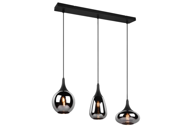 Moderné závesné osvetlenie s 3 elegantnými svietidlami v rôznych tvaroch ,upúta pozornosť v obývačke alebo v jedálni. Sklenené tienidlá v dymovo šedom odtieni zaistia jedinečnú svetelnú atmosféru. Osvetlenie je možné ľahko kombinovať s ostatným nábytkom. Šírka 68 cm.