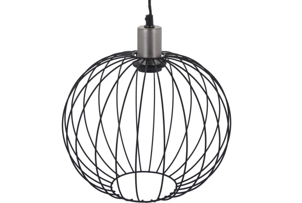 Závesné stropné svietidlo s priemerom 30 cm má jedinečný dizajn v industriálnom štýle. Tienidlo vyrobené z kovového drôtu v čiernom prevedení dodáva lampe štýlový a moderný vzhľad. Bude sa skvele vynímať v každej domácnosti, kancelárii alebo pracovni.