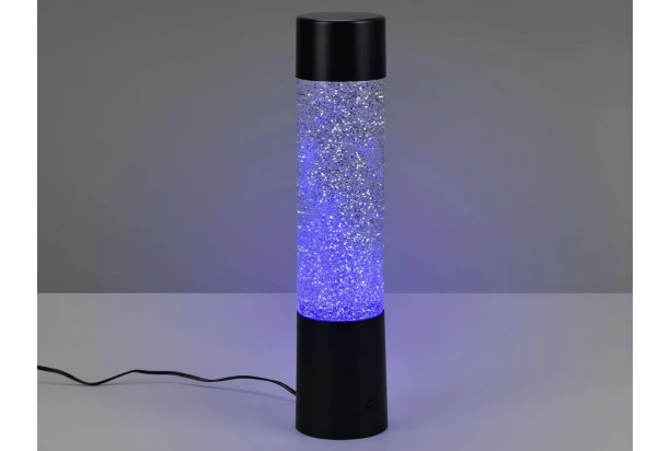Trocha trblietok nikdy neuškodí! LED vodný valec vytvára farebné svetelné akcenty vo vašej obývačke, spálni, detskej alebo mládežníckej izbe so vstavaným RGB meničom farieb. Po zapnutí sa trblietavé častice pohybujú v čírej kvapaline, čo vytvára zaujímavú hru svetla. Vodná lampa s matne čiernou základňou sa stane skutočnou ozdobou Vášho domova. Výška 34 cm.