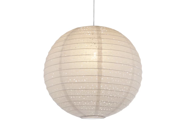 Klasické okrúhle tienidlo z bieleho papiera s dekoratívnym dierovaním, ktoré vytvára zaujímavé svetelné efekty, má priemer 40 cm a je vhodné pre všetky závesy s päticou E27.