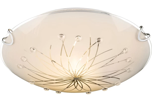 Okrúhle (priemer 25 cm), moderné, ale zároveň klasické stropné svietidlo Calimero I ponúka nadčasový dizajn. Saténové sklo s priehľadnými linkami má na sebe pripevnené číre ozdobné kamienky, ktoré umožňujú krásne lámanie svetla. Vstavaná pätica E27 Vám ponúka možnosť si sami určiť zdroj svetla (max. 60W) a sami si tak definovať intenzitu svetla a farbu svetla. Žiarovka by však mala byť v tvare kvapky.