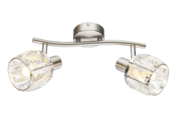 Stropné osvetlenie zo série Kris kombinuje kovovú základňu v matnom prevedení a elegantné tienidlo z jemných sklenených kryštálov orámovaných v pochrómovanom kove. Lampa má 2 svietidlá a celkovú dĺžku 28 cm.