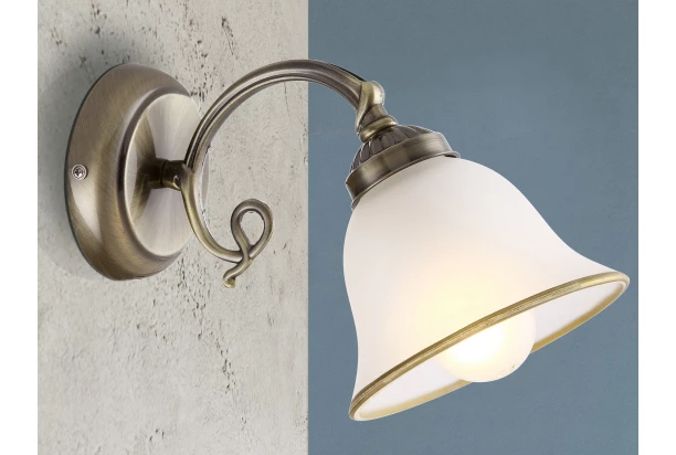 Nástenná lampa zo série Odin sa vyznačuje krásnym dizajnom v tradičnom štýle. Lampa je vyrobená z mosadze a saténového skla, čo dodáva svietidlu jedinečný vzhľad.