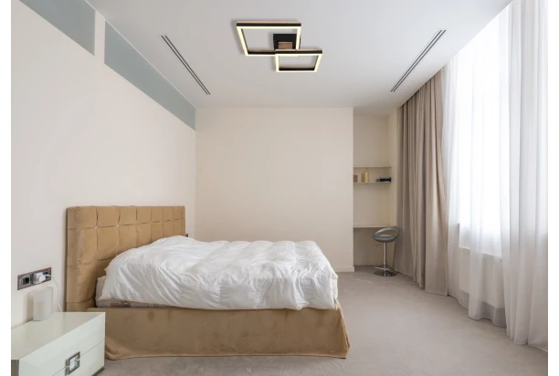 Toto moderné stropné svietidlo zo série Beatrix zaujme svojim štýlovým dizajnom a stane sa centrom každej vašej izby. Na stropnom držiaku vo vzhľade dreva sú dva hranaté LED panely s celkovou dĺžkou 49 cm (malý štvorec 22×22 cm, veľký štvorec 27×27 cm), ktoré svieti teplým bielym svetlom 3000 Kelvinov a vytvára tak skvelú atmosféru.