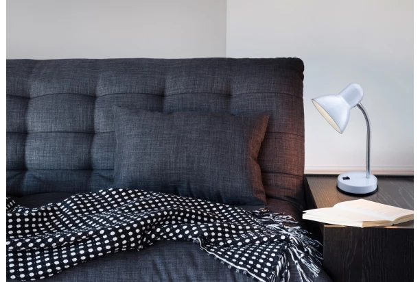 Jednoduchá, ale praktická stolná lampa v bielej farbe prináša do každej miestnosti pocit pokoja a poriadku. Svietidlo je vybavené flexibilným ramenom a je vhodné ako nočná lampička aj ako zdroj svetla na pracovný stôl. Pohodlné zapínanie a vypínanie zaisťuje vypínač na základni lampičky. Rozmer 21,5×35 cm.
