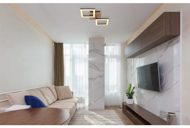 Toto moderné stropné svietidlo zo série Kerry zaujme svojim štýlovým dizajnom a stane sa centrom každej vašej izby. Na stropnom držiaku vo vzhľade dreva sú dva štvorcové LED panely s celkovou dĺžkou 46 cm, ktoré svietia teplým bielym svetlom 3000 Kelvinov a vytvárajú tak skvelú atmosféru.