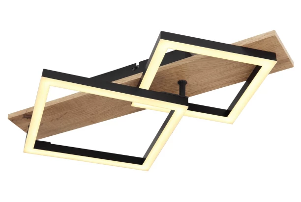 Toto moderné stropné svietidlo zo série Beatrix zaujme svojim štýlovým dizajnom a stane sa centrom každej vašej izby. Na stropnom držiaku vo vzhľade dreva sú 2 hranaté LED panely s celkovou dĺžkou 47,5 cm, ktoré svieti teplým bielym svetlom 3000 Kelvinov a vytvára tak skvelú atmosféru.