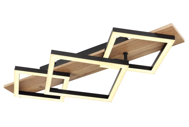 Toto moderné stropné svietidlo zo série Beatrix zaujme svojim štýlovým dizajnom a stane sa centrom každej vašej izby. Na stropnom držiaku vo vzhľade dreva sú 3 hranaté LED panely s celkovou dĺžkou 61 cm, ktoré svieti teplým bielym svetlom 3000 Kelvinov a vytvára tak skvelú atmosféru.