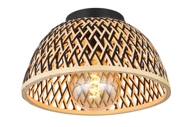 Toto krásne okrúhle stropné osvetlenie zo série Colly spája moderný dizajn s prírodnými prvkami a môže byť atraktívnym doplnkom pre rôzne interiéry. Elegantné tienidlo s priemerom 35 cm je vyrobené z bambusu vo svetlých prírodných farbách, konštrukcia je z čierneho matného kovu a výsledkom je vkusný a kontrastný vzhľad.