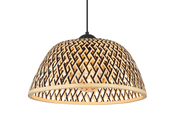 Tento krásny luster zo série Colly spája moderný design s prírodnými prvkami a môže byť atraktívnym doplnkom pre rôzne interiéry. Elegantné tienidlo s priemerom 40 cm je vyrobené z bambusu vo svetlých prírodných farbách, konštrukcia je z čierneho matného kovu a výsledkom je vkusný a kontrastný vzhľad.