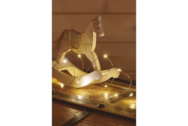 Elegantná Vianočná nano reťaz na batérie je ideálna na vytvorenie útulnej atmosféry bez rušivého prívodného kábla. Jemný drôtik sa ľahko prispôsobí tvaru dekorácie a svetielka krásne vyniknú na adventnom venci, soškách alebo v lucerne či v pohári. Reťaz o dĺžke 1,9 m je vybavená krabičkou na batérie s časovačom, ktorý zaistí 6 hodín svietenia a 18 hodín vypnutia.