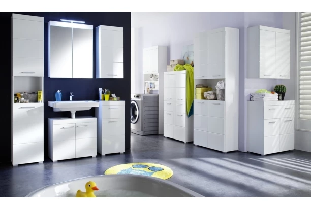 Zariaďte si svoj domov moderne, prakticky a zároveň univerzálne – kúpeľňová vysoká skrinka z kolekcie Amanda v bielom lesku dokonale pasuje k všetkým interiérovým farbám, obkladom alebo tapetám. Ľahko tak zariadite celú kúpeľňu.