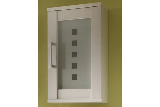 Závesná skrinka do kúpeľne z modelovej rady Poseidon je vyrobená v kombinácii satinovaného skla a dekoru bieleného smrekovca, ktorý príjemne presvetlí priestor kúpeľne. Rozšíri kúpeľňu o ďalšie úložné priestory.