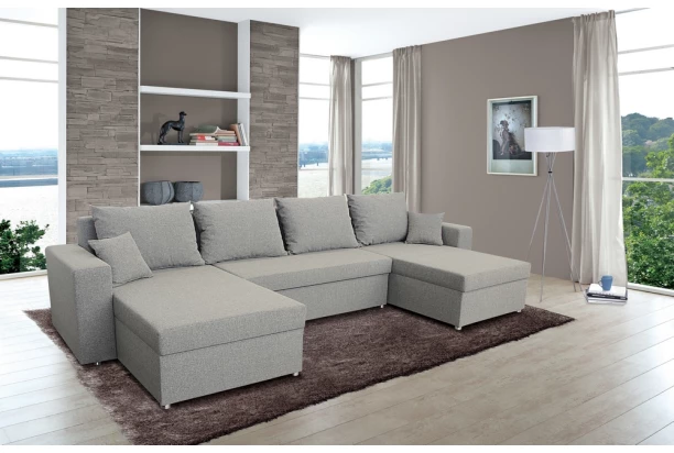 Sedacia súprava v tvare U je obľúbená pre jej praktickosť, priestrannosť a priaznivú cenu. Ponúka mäkké oporné vankúše, úložný priestor aj funkciu rozkladu na lôžko. Potiahnutá do svetlo šedej tkaniny.