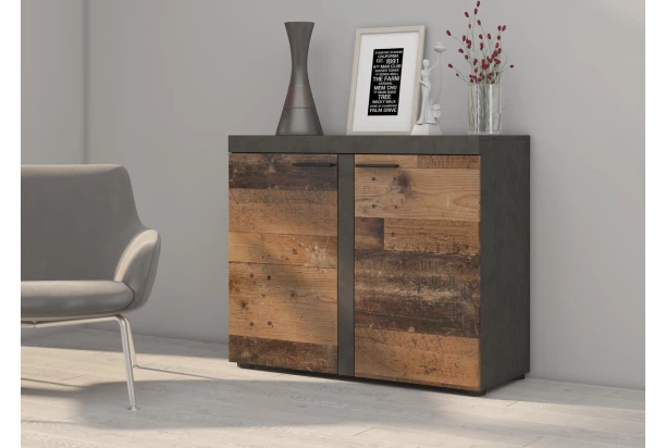 Komoda 2-dverová Rumba, vintage optika kovu/dreva