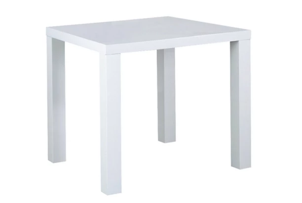Jedálenský stôl so štvorcovým pôdorysom 80×80 cm s bielym vysokolesklým povrchom podľa aktuálnych trendov. Jednoduchý minimalistický štýl zaručuje neutrálnosť pre každú modernú jedáleň či kuchyni.