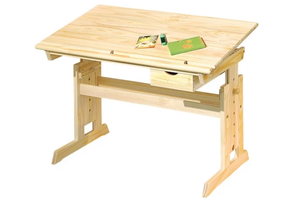 Polohovateľný písací stôl z prírodného borovicového dreva dodá útulnú atmosféru a ľahko sa prispôsobí. Výšku konštrukcie a sklon pracovnej plochy môžete ľubovoľne nastaviť podľa aktuálnej potreby. Vrátane praktickej lišty pre odkladanie písacích potrieb.
