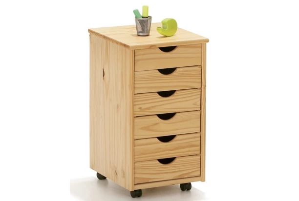 Úložný kontajner k písaciemu stolu z prírodného borovicového dreva dodá útulnú atmosféru a vďaka konštrukcii na kolieskach ho ľahko presuniete. Obsahuje celkom 6 úložných zásuviek pre prehľadné ukladanie.