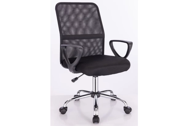 Klasicky moderné kancelárske kreslo z čiernej sieťoviny a s bočnými opierkami, univerzálne do každej pracovne, študentskej alebo detskej izby.