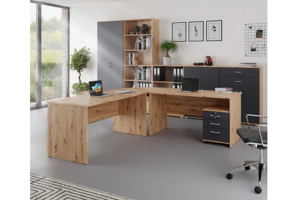 Vysoký regál z kancelárskeho programu Lift – v útulnom dekore dub artisan si môžete ľahko vybaviť svoju domácu kanceláriu alebo pracovňu. Prípadne kombinovať viac kancelárskych prvkov dohromady a prispôsobiť si tak pracovný priestor podľa vlastných potrieb. Konštrukciu regálu môžete doplniť o úložné zásuvky a predné dvere z programu Lift.