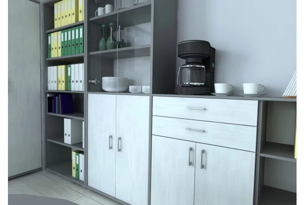 Sada sklenených dverí (2 ks) z kancelárskeho programu Lift. Dvere sú určené na montáž k regálu z programu Lift. Vytvoríte si tak v regáli ľahko vnútorný úložný priestor.
