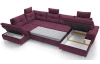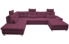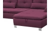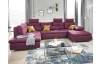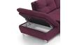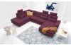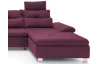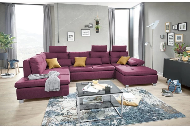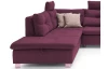 Priestranná trendová sedacia súprava s pôdorysom v tvare ľavé U obsahuje funkciu rozkladu na lôžko, dva rôzne úložné priestory, polohovateľnú podrúčku, vankúše aj tri opierky hlavy, ktoré môžete ľubovoľne umiestniť na akúkoľvek časť sedačky. Očalúnená príjemne mäkkou látkou v odtieni fialová lila.