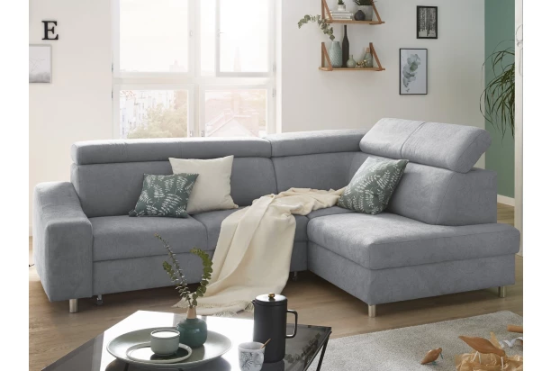 Moderná rohová sedacia súprava elegantných tvarov ponúkne komfort bez kompromisu aj v menšej obývacej izbe. Vysoké operadlo, nastaviteľné chrbtové opierky, úložný priestor aj funkcia rozkladu vám spríjemnia každodennú pohodu. Sedačka je očalúnená mäkkou štruktúrovanou látkou vo farbe svetlo šedá. Variant sedačky s otomanom tvorí pravý roh.