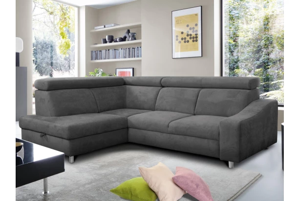 Moderná rohová sedacia súprava elegantných tvarov ponúkne komfort bez kompromisu aj v menšej obývacej izbe. Vysoké operadlo, nastaviteľné chrbtové opierky, úložný priestor aj funkcia rozkladu vám spríjemnia každodennú pohodu. Sedačka je očalúnená mäkkou štruktúrovanou látkou vo farbe stredne šedá. Variant sedačky s otomanom tvorí ľavý roh.