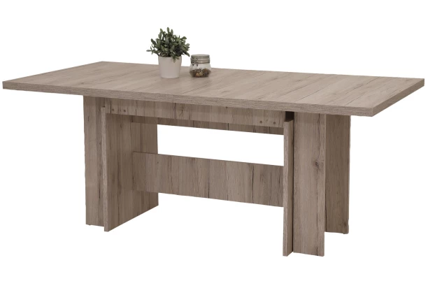 Jedálenský stôl v dekore pieskový dub je vybavený extra praktickou rozkladacou funkciou, vďaka ktorej si plochu stola môžete prispôsobiť na celkom 5 rôznych šírok (základná poloha + 4 rozložené polohy). Ľahko tak môžete usporiadať malú, väčšiu či veľkú hostinu – podľa aktuálnej potreby.