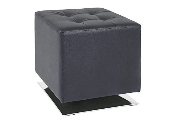 Taburet v modernom dizajne má otočný sedák očalúnenie čiernou ekokožou. Vďaka kovovej podnoži pôsobí v interiéri veľmi vzdušne.