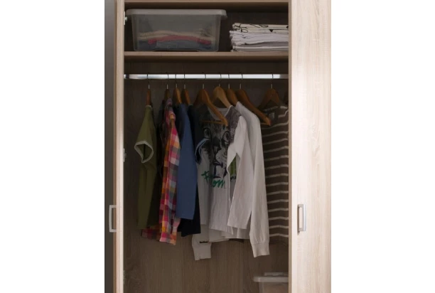 - vnútorný blok: otvorený úložný priestor, 1 x závesná šatníková tyč z kovu, 2 x polica
