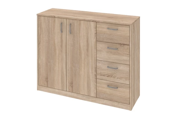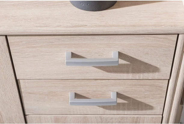 Široká zásuvková komoda z programu Mega v dekore dub sonoma – variabilný program nábytku Mega je úplne univerzálny a vhodný pre zariadenie každej miestnosti. Kombinujte medzi sebou jednotlivé diely a vytvorte si tak doma prostredie podľa svojej vlastnej fantázie, potrieb a priestorových možností.