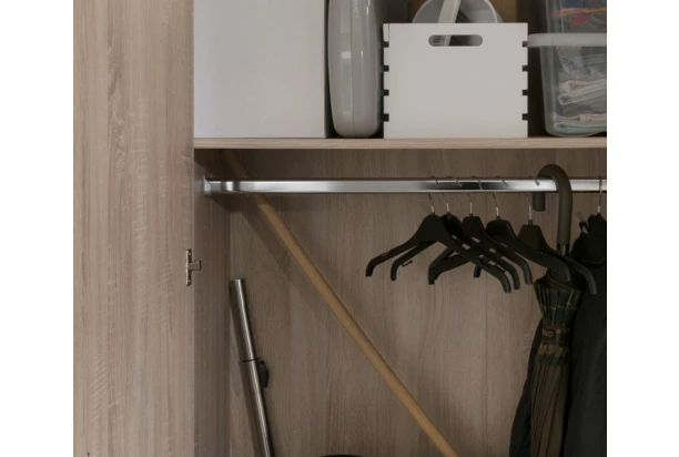 - ľavý vnútorný blok: otvorený úložný priestor, 1 x závesná šatníková tyč z kovu, 1 x polica