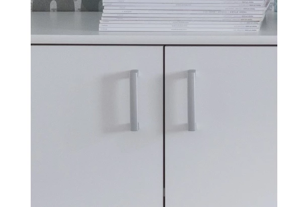 Vysoká komoda z programu Mega v bielom dekore – variabilný program nábytku Mega je úplne univerzálny a vhodný pre zariadenie každej miestnosti. Kombinujte medzi sebou jednotlivé diely a vytvorte si tak doma prostredie podľa svojej vlastnej fantázie, potrieb a priestorových možností.