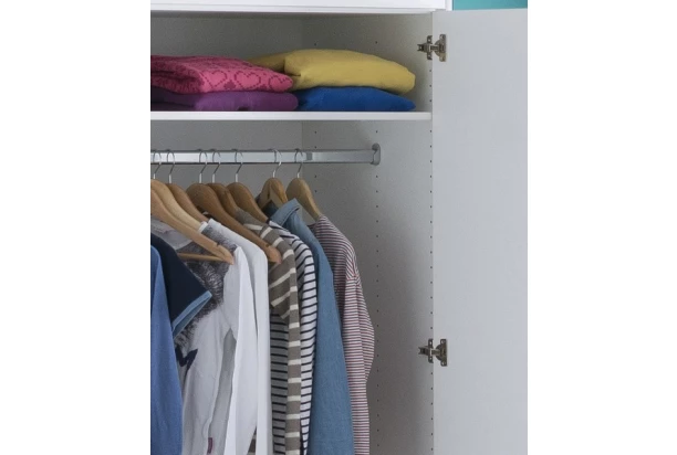 - vnútorný blok: otvorený úložný priestor, 1 x závesná šatníková tyč z kovu, 2 x polica