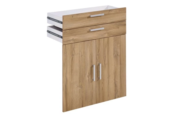 Sada dverí a zásuviek (4 ks) v útulnom dekore starý dub z programu Calvia – pre zariadenie vašej domácej pracovne alebo kancelárie v modernom a zároveň praktickom štýlu. Kombinujte medzi sebou jednotlivé elementy z rady Calvia a vytvorte si tak pracovné prostredie plné ergonómie presne podľa vašich predstáv.