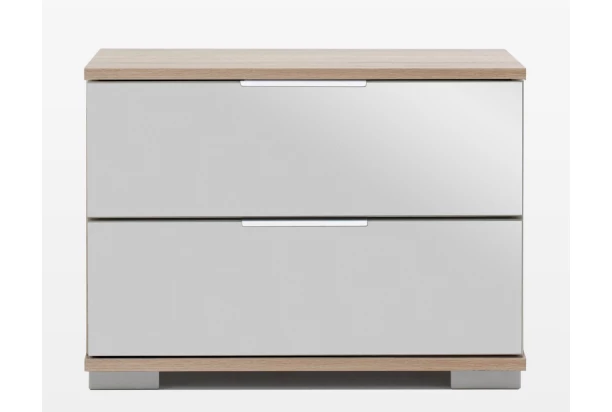 Nočný stolík z programu Easy plus ponúka 2 priestranné zásuvky nad sebou. V kombinácii dekoru dub sonoma so zrkadlom na predných plochách pôsobí luxusne.